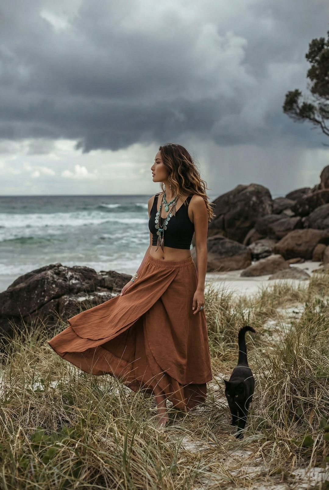 2-in-1 Maxi Skirt Palazzo Pants Copper