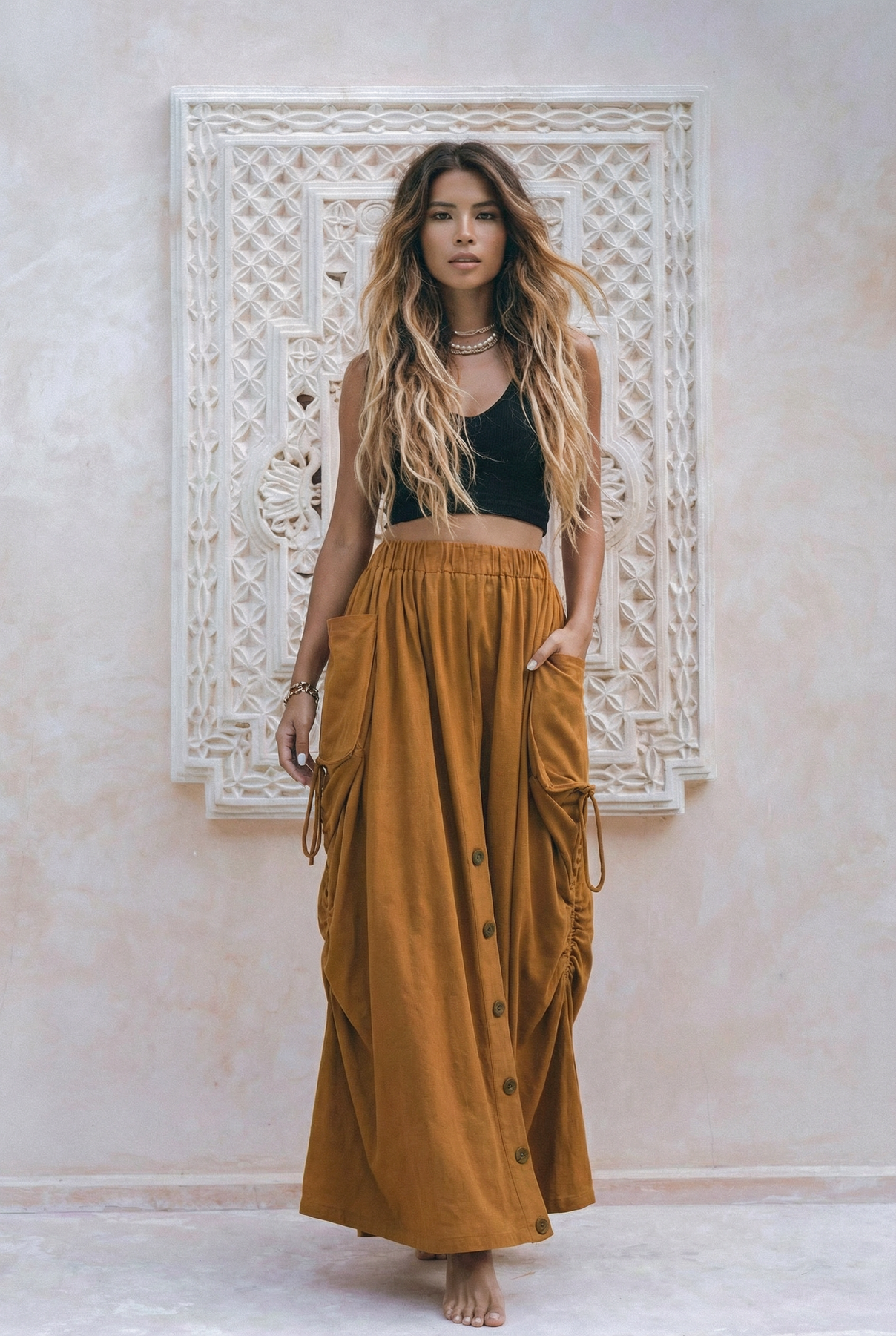 2-in-1 Maxi Skirt Palazzo Pants Copper