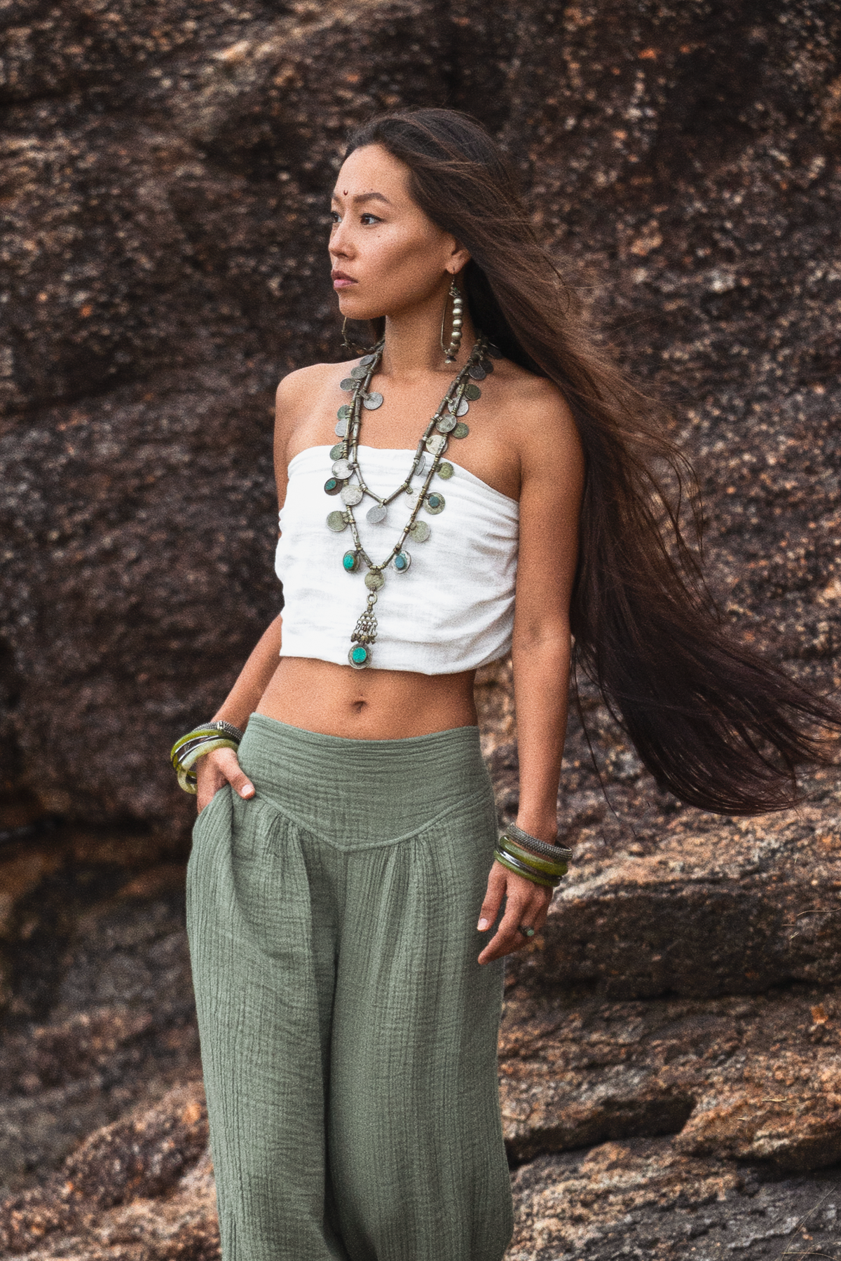 Ideal for yoga and meditation, these pants feature two convenient pockets for a touch of practicality.